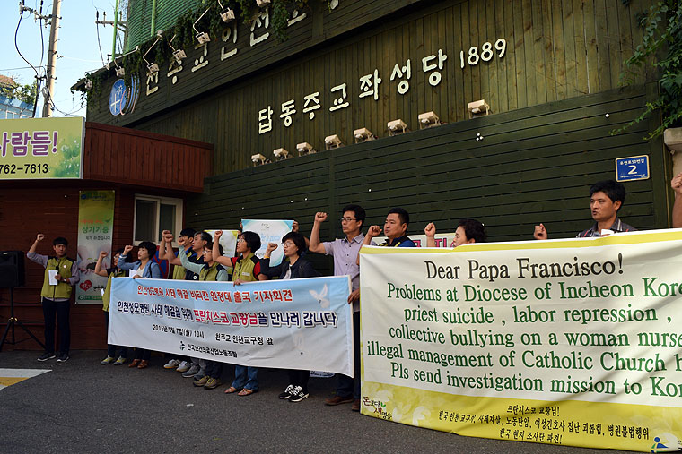 보건의료노조는 9월 7일 오전 10시 천주교 인천교구에서 기자회견을 열고 천주교의 총본산인 바티칸 교황청으로 원정투쟁을 전개, 프란치스코 교황을 직접 만나 무분별한 돈벌이 경영과 노조탄압·인권유린으로 얼룩진 인천성모병원과 인천교구 문제를 해결하기 위한 총력투쟁을 전개한다.