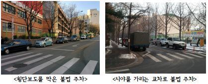 사실 이런 곳은 도로교통법 제32조에 의거 주․정차 금지구역입니다. 따라서 예전부터 단속을 했어야 마땅했습니다. 그래도 지금부터 단속을 한다니 다행입니다.