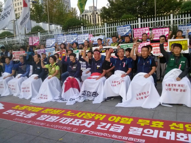 민주노총의 강력한 규탄과 노동자들의 항의, 심지어 한국노총 간부의 분신시도에도 불구하고 한국노총 중집은 9월 14일(월) 표결로 야합안을 강행 처리했다.
