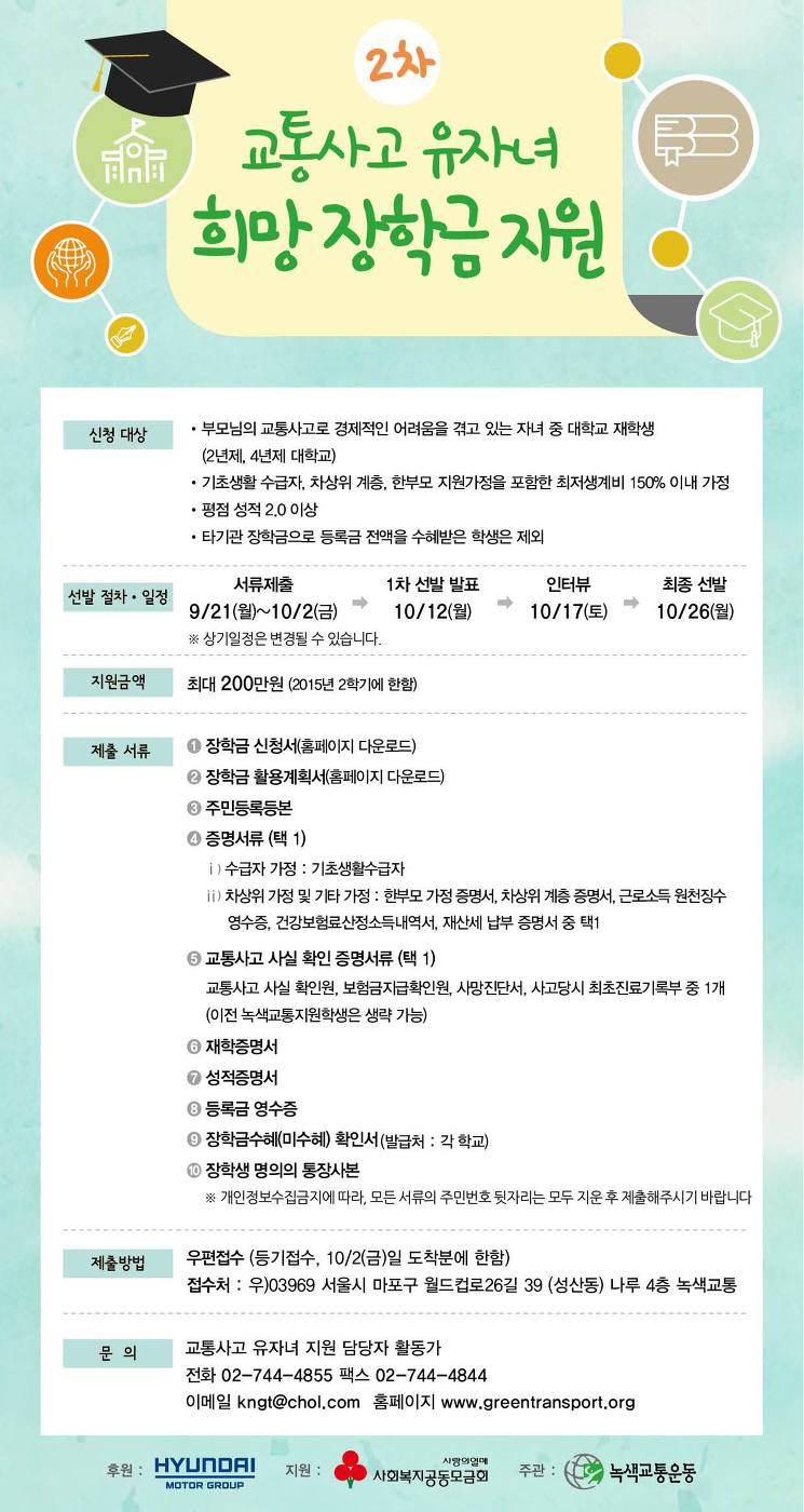 대학생 장학사업 2차 모집이 아래와 같이 진행됩니다.