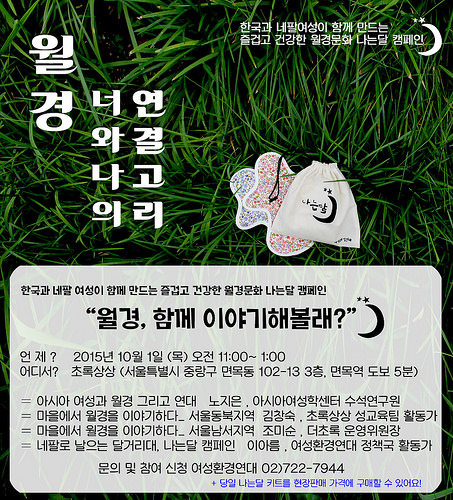 아시아 여성과 월경, 그리고 우리라는 주제로 나는달 작은 포럼이 열립니다. 도란도란 모여 월경에 대한 이야기 꽃을 피우고 네팔여성과 함께 하는 나는달 캠페인도 참여해요!