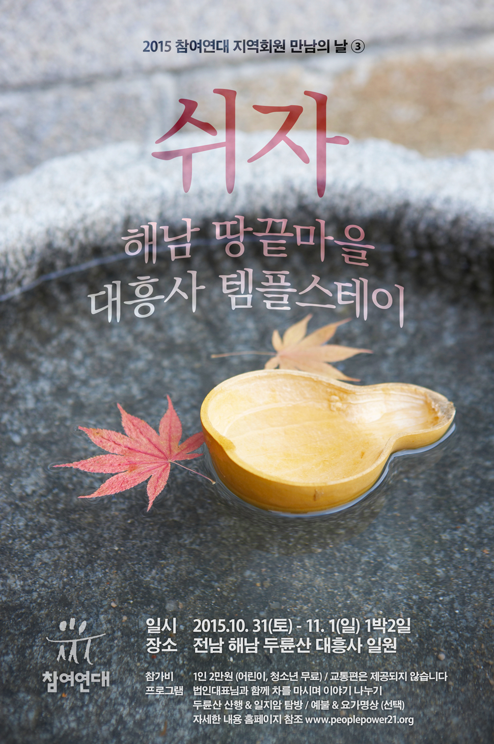 지역에 계신 모든 회원님들! 친구, 가족과 함께 가을 대흥사로 마음 공부하러 오세요!