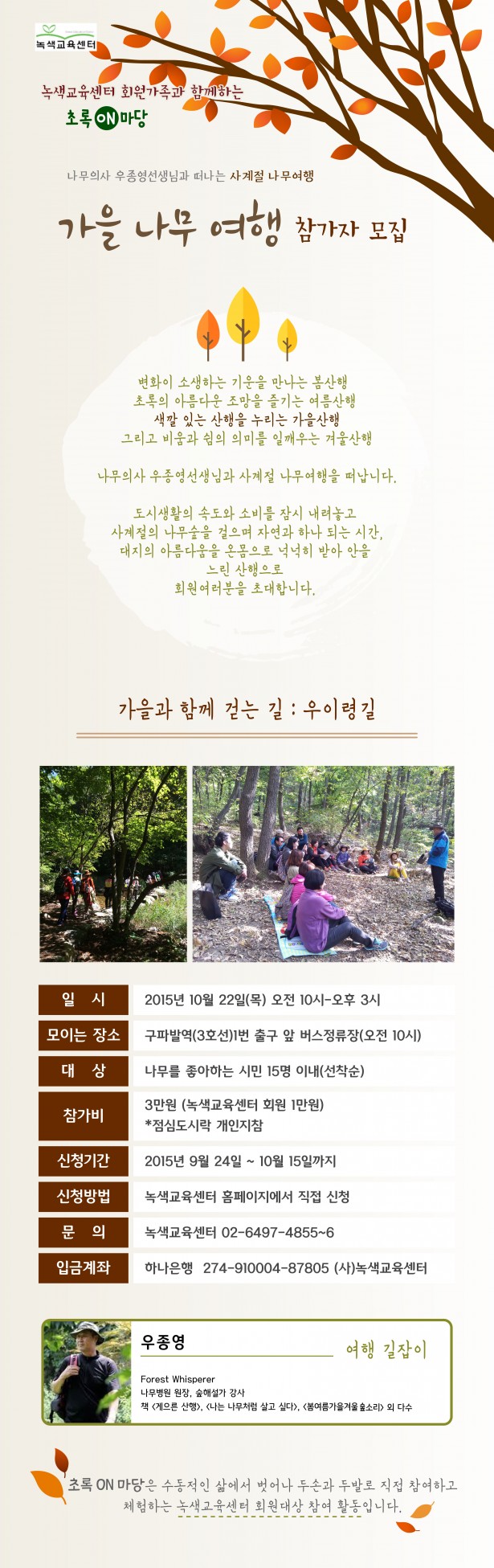 <초록ON마당> 나무의사 우종영선생님과 떠나는 가을나무여행 참가자 모집