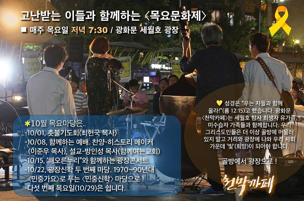 오늘 촛불교회 촛불기도회는 매월 첫주 광화문 세월호 광장에서