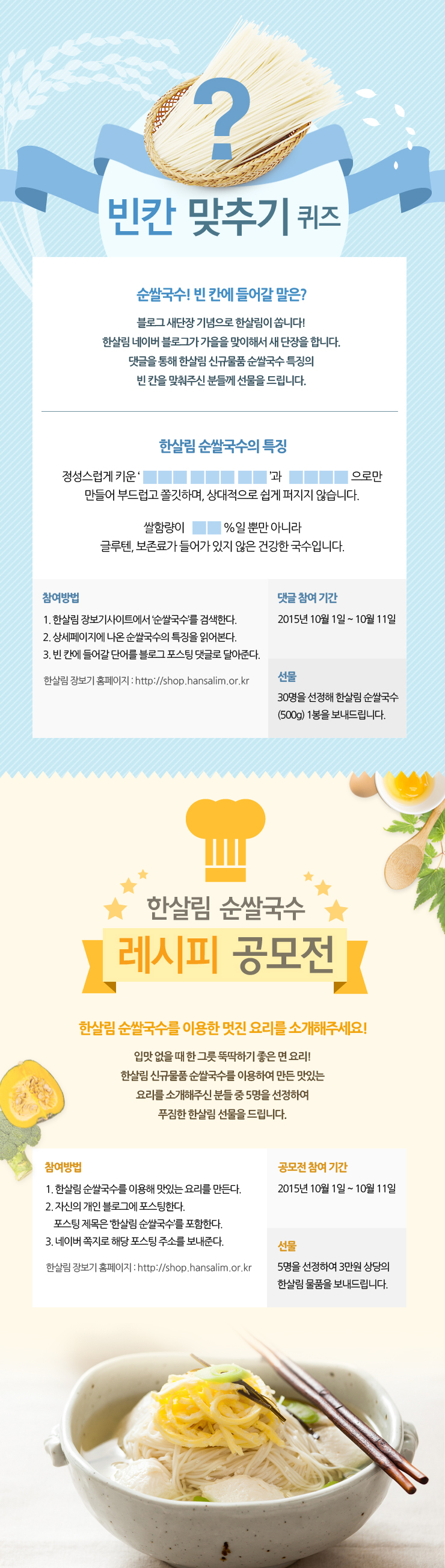 [이벤트] 한살림 블로그 새단장 기념 이벤트 '빈칸맞추기 퀴즈' '순쌀국수 요리법 공모전'