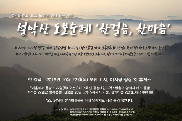 설악산을 지키기위해 걷습니다. 우리의 걸음 걸음으로부터 평화가 시작될 수 있도록!