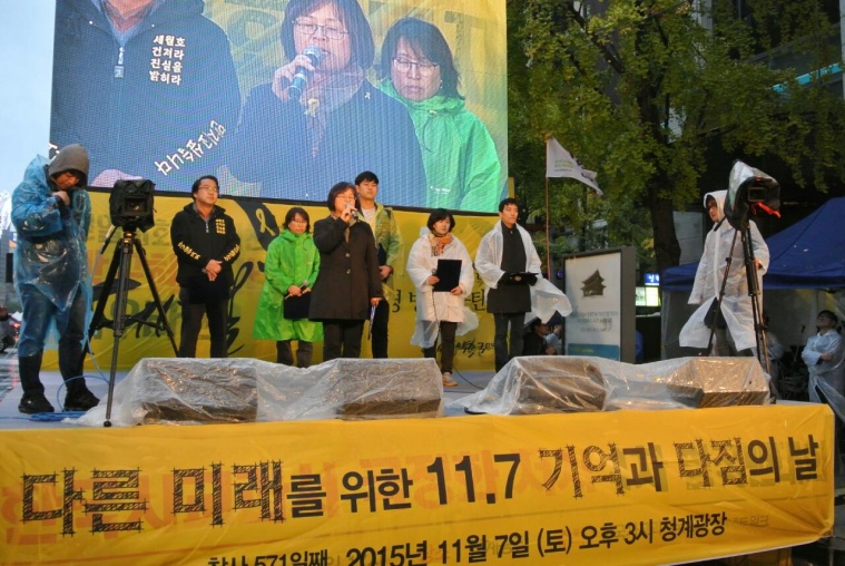 11월 7일 오후 3시, 청계광장에서는 폭우 속에서도 세월호특별법 제정 1주기를 기념하고 참사의 진상규명과 책임자 처벌, 온전한 선체인양과 9명의 실종자 수습을 촉구하는 촛불문화제가 개최됐다.