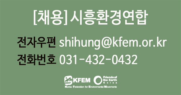 시흥환경운동연합에서 함께 활동할 열정 있는 상근 활동가를 모집하고 있습니다.