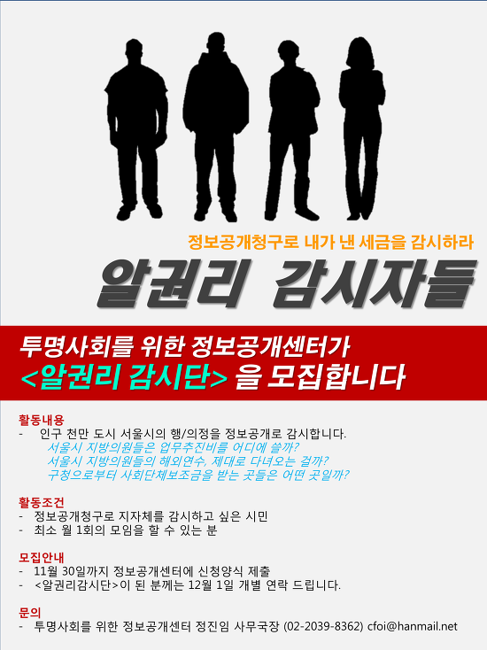 화, 2015/11/17- 14:42 에 익명 (미확인) 에 의해 제출됨 [0] 관련 개인/그룹 정보공개센터 지역 종로구 아래 양식이 보이지 않으시는 분은 위 이미지를 클릭하시거나, 신청하기를 클릭해 주시기 바랍니다. <알권리 감시단 신청하기> 로드 중... 링크 http://www.opengirok.or.kr/4342 Tags 공지사항 자원봉사 알권리감시단 Like 0 Dislike 0 827 views 댓글 달기 이름 제목 Comment 저장 Preview