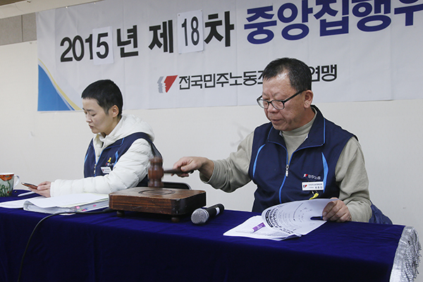 이날 회의에서는 ‘노동개악 저지 총파업 투쟁계획’을 단일 안건으로 상정해 2015년 말 박근혜-새누리당의 노동개악 공세에 맞서기 위한 총파업 투쟁계획을 심의 확정했다.