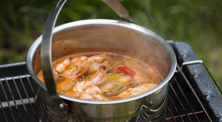 자연산대하 4~5마리, 새우살 150g, 멸치다시마맛국물 3컵, 무 1토막, 양파 ⅓개, 파 ½대, 청양고추 1개, 홍고추 ½개, 다진마늘 1작은술 양념 고춧가루 1.5큰술, 국간장 1큰술, 미온 1큰술, 소금, 후추 약간씩