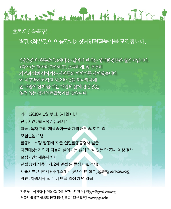 <작은것이 아름답다>에서 청년인턴활동가를 모집합니다.