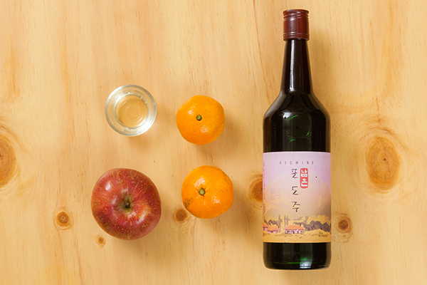 남촌포도주 1병, 사과 1개, 귤 2개, 설탕이나 꿀 약간
