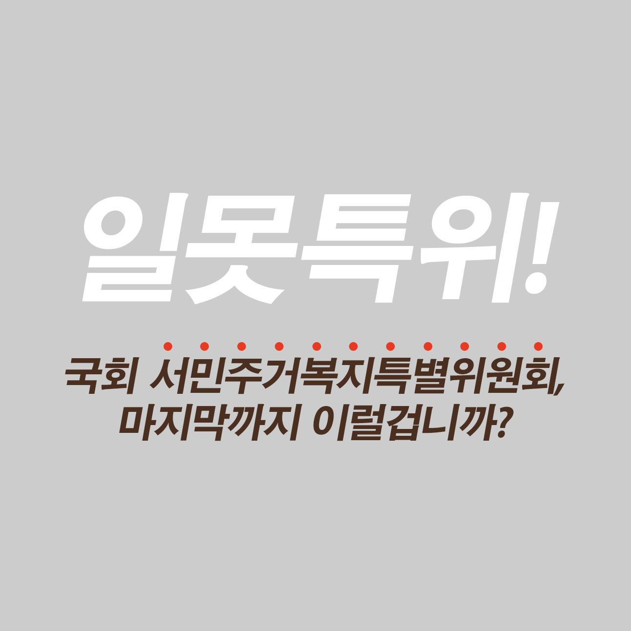 국회 서민주거복지특별위원회, 마지막까지 이럴겁니까?