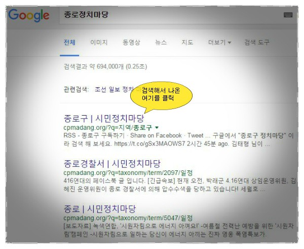 2016총선 울동네 예비후보를 알고싶어? => 구글에서 "종로 정치마당"