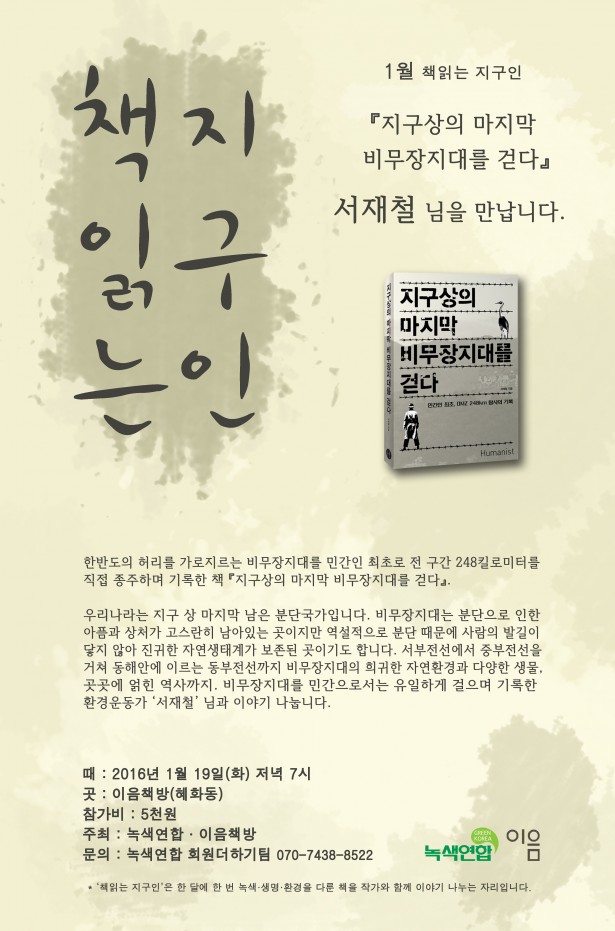 [책읽는 지구인] 1월 ‘지구상의 마지막 비무장지대를 걷다’ 서재철 님을 만납니다.