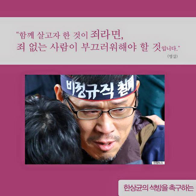 [한상균의 석방을 촉구하는 우리 모두의 조각보 성명]