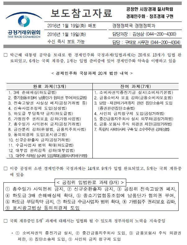 3. 박근혜 정부의 경제민주화 공약 20개 평가 및 유일호 부총리 인사청문회 경제민주화 공약 실천 답변 관련 참여연대 경제금융센터의 종합 보도자료