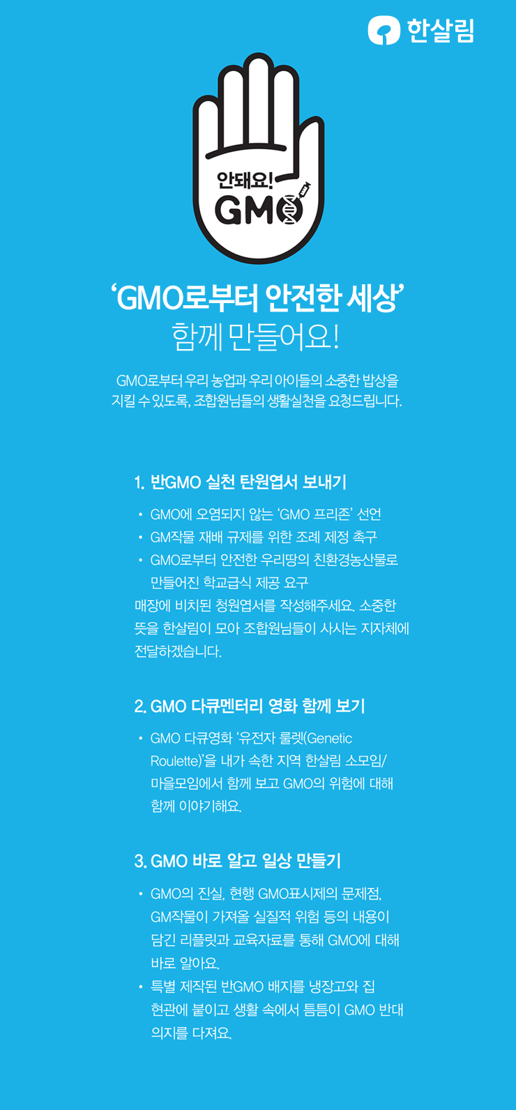 수, 2016/01/27- 17:39 에 익명 (미확인) 에 의해 제출됨 [0] 관련 개인/그룹 한살림 공식 블로그 지역 중구성동구 링크 http://blog.naver.com/hansalim/220610493335 Tags 한살림 캠페인 GMO Like 0 Dislike 0 507 views 댓글 달기 이름 제목 Comment 저장 Preview