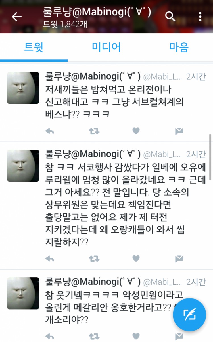 yunshun5 공당의 상무의원이라는 사람이 자기자신의 취미생활에 피해(?)를 봤다고 정상적인 민원을 "악성"민원으로 공개적으로 논평(?)하고 있는 상황이네요. 정의당의 현상태를 잘 아시리라 생각합니다. 평당원으로써의 정당한 항의를 하오니 꼭 확인 하시기 바랍니다. 토, 2016/07/30- 19:30 Like 0 Dislike 0 댓글 공유 답글