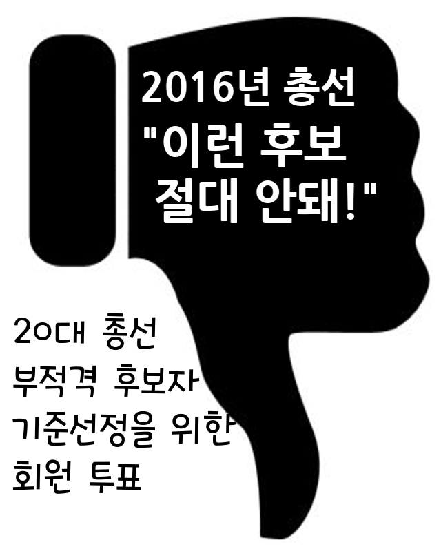 이에 어떤 부적격 후보를 선정하기 위한 기준을 유권자인 회원 여러분의 참여로 만들고자 설문조사를 합니다.