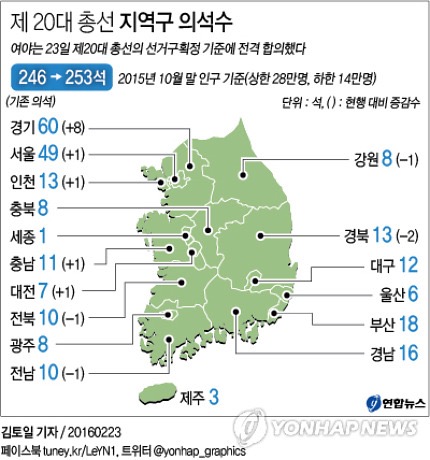 지역구 경기 8석, 서울·인천·대전·충남 1석씩 증가