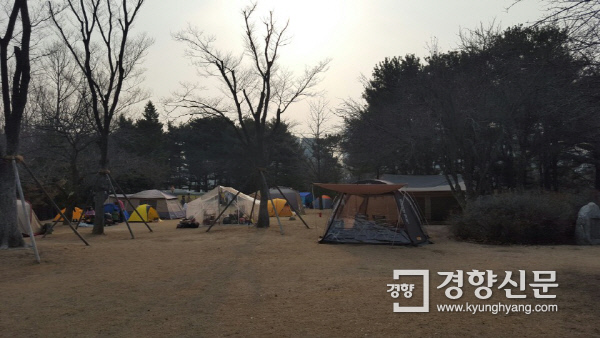 테러방지법에 대한 더불어민주당 등 야당의 국회 본회의 무제한 토론(필리버스터)이 6일째 열리고 있는 28일 본회의장 옆 국회 의원동산에서 새누리당 정병국 의원이 주최한 ‘국회와 함께하는 친환경·안전캠핑’ 캠페인과 1박 2일 캠핑이 열리고 있다.