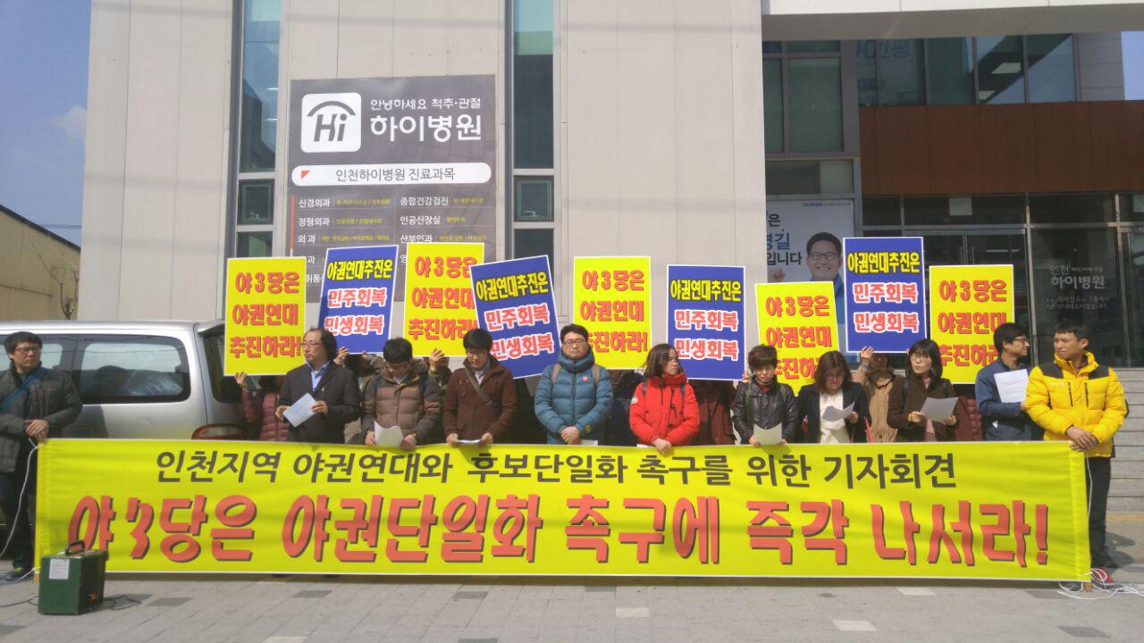 인천지역 야권연대와 후보단일화 촉구를 위한 야(野) 3당 항의 방문 및 기자회견