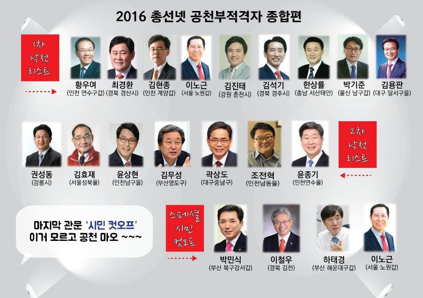곽상도, 권성동, 김무성, 김효재, 윤상현, 윤종기, 조전혁 2차 공천부적격자