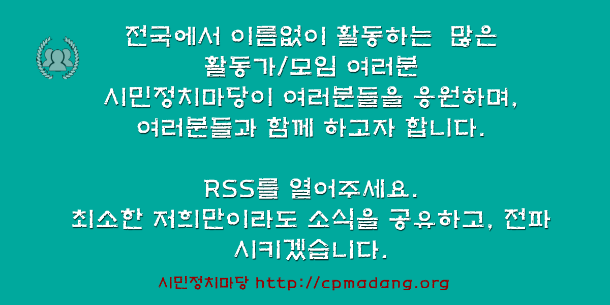전국에서 이름없이 활동하는 많은 활동가 여러분 시민정치마당이 여러분들을 응원하며, 함께 하고자 합니다.