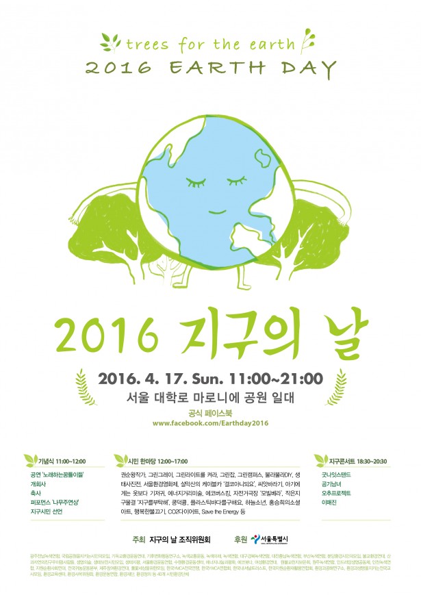 금, 2016/04/15- 13:51 에 익명 (미확인) 에 의해 제출됨 [0] 관련 개인/그룹 녹색연합 지역 성북구 4월 22일은 지구의 날입니다. 2016년 지구의 날을 맞아 4월 17일 대학로 마로니에 공원에서 지구의 날 축제 ‘Tress for... 링크 http://www.greenkorea.org/?p=52609 Tags 활동소식 지구의 날 Like 0 Dislike 0 240 views 댓글 달기 이름 제목 Comment 저장 Preview