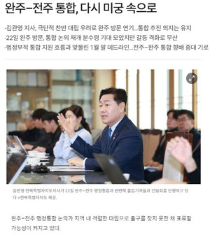 더불어민주당 정청래 대표가 조국혁신당에게 합당 제안을 하면서 올해 지방선거를 앞둔 정치권의 최대 변수로 떠오르고 있다. 이와 관련 전북지역 언론들은 6·3 지방선거판이 요동칠…