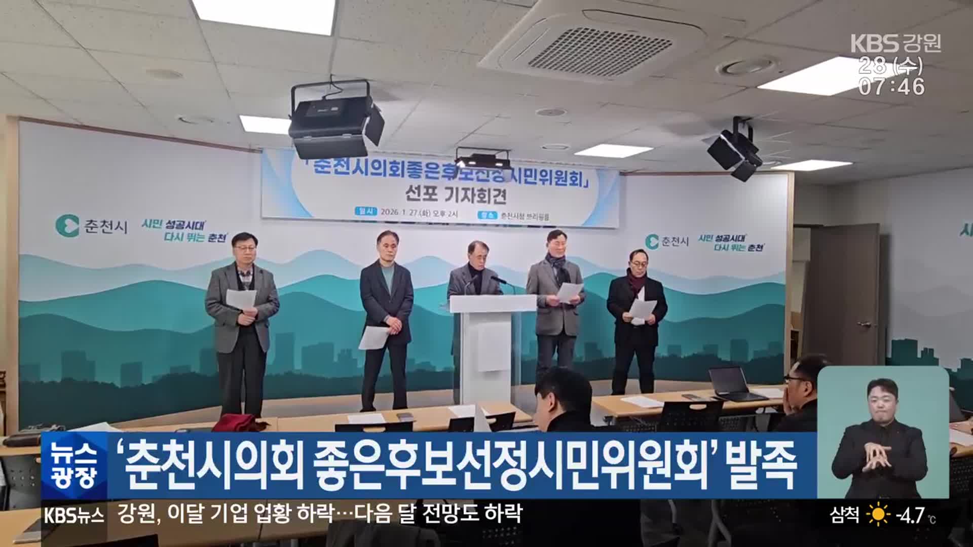 제8회 전국동시지방선거를 앞두고, '춘천시의회 좋은 후보 선정 시민 위원회'가 발족했습니다. 이들은 시민...
