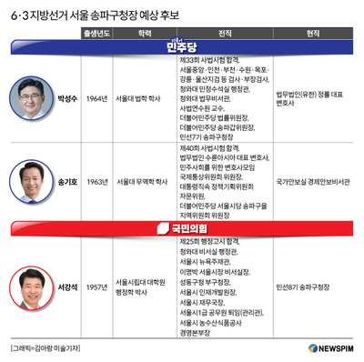 [서울=뉴스핌] 이경화 기자 = 6·3 지방선거를 앞두고 서울 송파구청장 선거 출마 예정자의 윤곽이 서서히 드러나고 있다. 강남 3구 가운데 하...