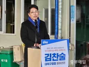 [중부매일 황인제 기자] 김찬술 전 대전시의원이 13일 대전 대덕구 대화공단의 한 폐공장에서 기자회견을 열고 대덕구청장 출마를 공식 선언했다.김...