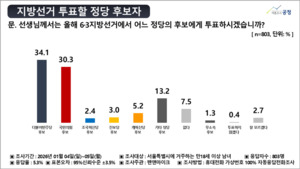 오는 6.3지방선거에서 더불어민주당 후보를 찍겠다는 응답과 국민의힘 후보에 투표하겠다는 응답이 오차범위(±3.5%p) 내라는 펜앤마이크 여론조사 결과가 6일 공개됐다.펜앤마이크가…