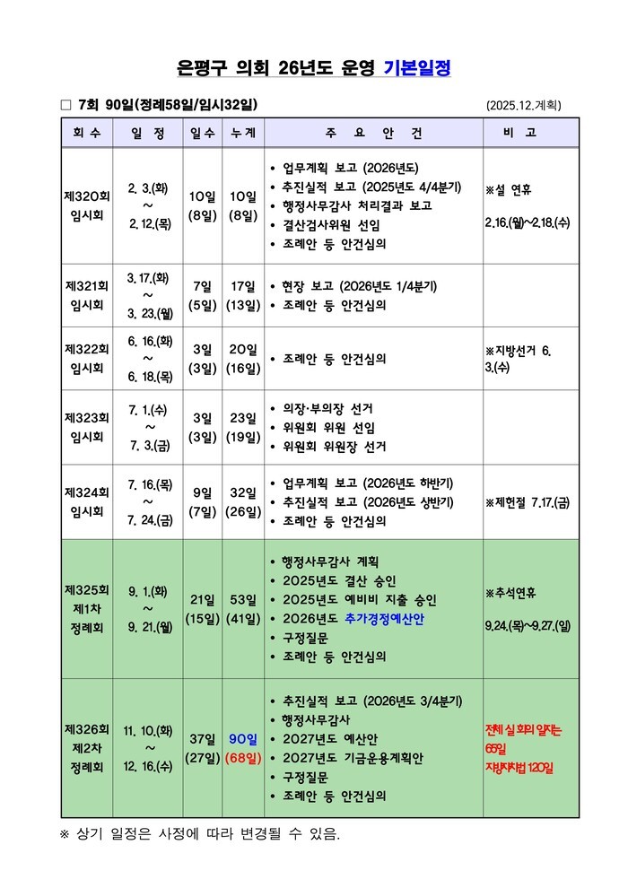 정례회 2회·임시회 5회 등 총 7회 개최⋯ 행정사무감사 및 예산안 심의 예정지방선거 이후 7월 중 제9대 후반기 의장단 선거와 원 구성 진행은...