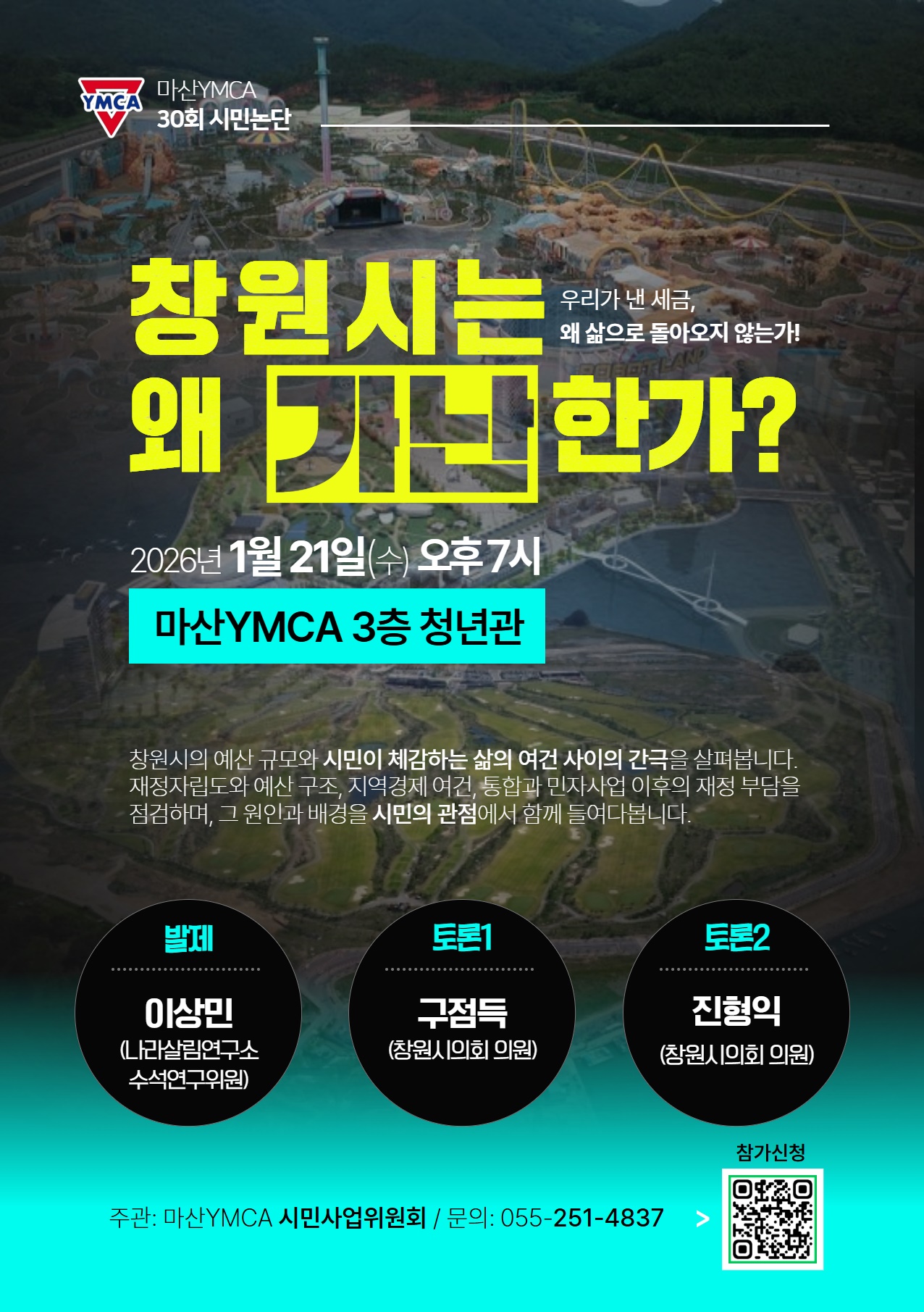 2010년 옛 창원‧마산‧진해가 통합했던 창원특례시의 재정과 시민 삶을 짚어보는 토론회가 열린다. 마산YMCA는 제30회 시민논단으로 "창원시는 왜 가난한가"라는 제목으로 오는…