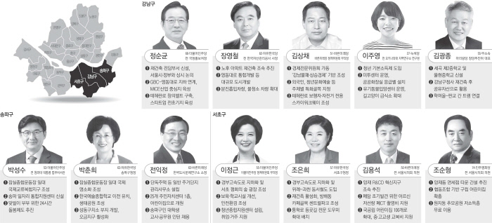 ●강남 삼성동 복합지구 ‘공통 공약’여도 야도 “재건축 적극 지원” ●서초 문화시설 확충 등 생활 공약재건축 초과이익도 ‘쟁점’ ●송파 작년에 이전한 성동구치소부지 개발 방향…