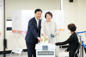 [시사경제신문=서아론 기자] 성북구 이승로 구청장이 29일 제21대 대통령선거 사전투표 첫날, 아내와 함께 석관동 투표소를 찾아 소중한 한 표를...