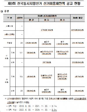 대전·세종·충남, 제9회 지방선거 선거비용제한액 공고 - 웹이코노미