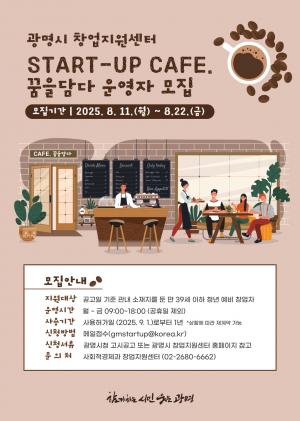 광명시(시장 박승원)는 청년과 예비 창업자의 일자리 창출과 창업 활성화를 위해 창업지원센터(오리로 362, 2층) ‘스타트업 카페(START-UP CAFE) 꿈을담다’ 운영자를…