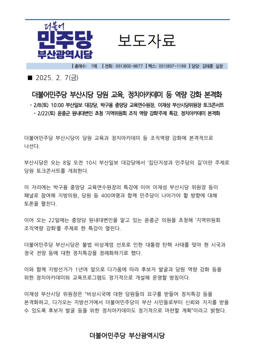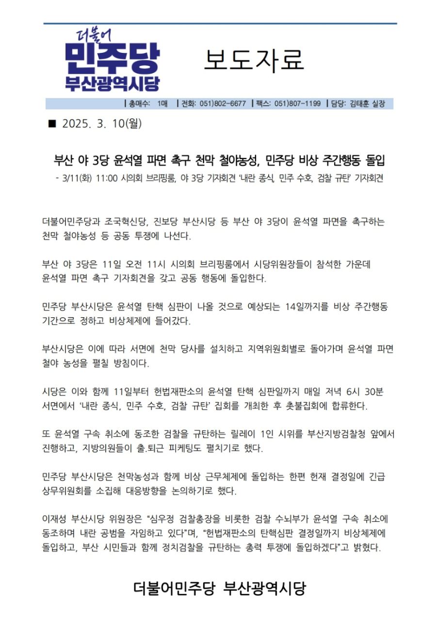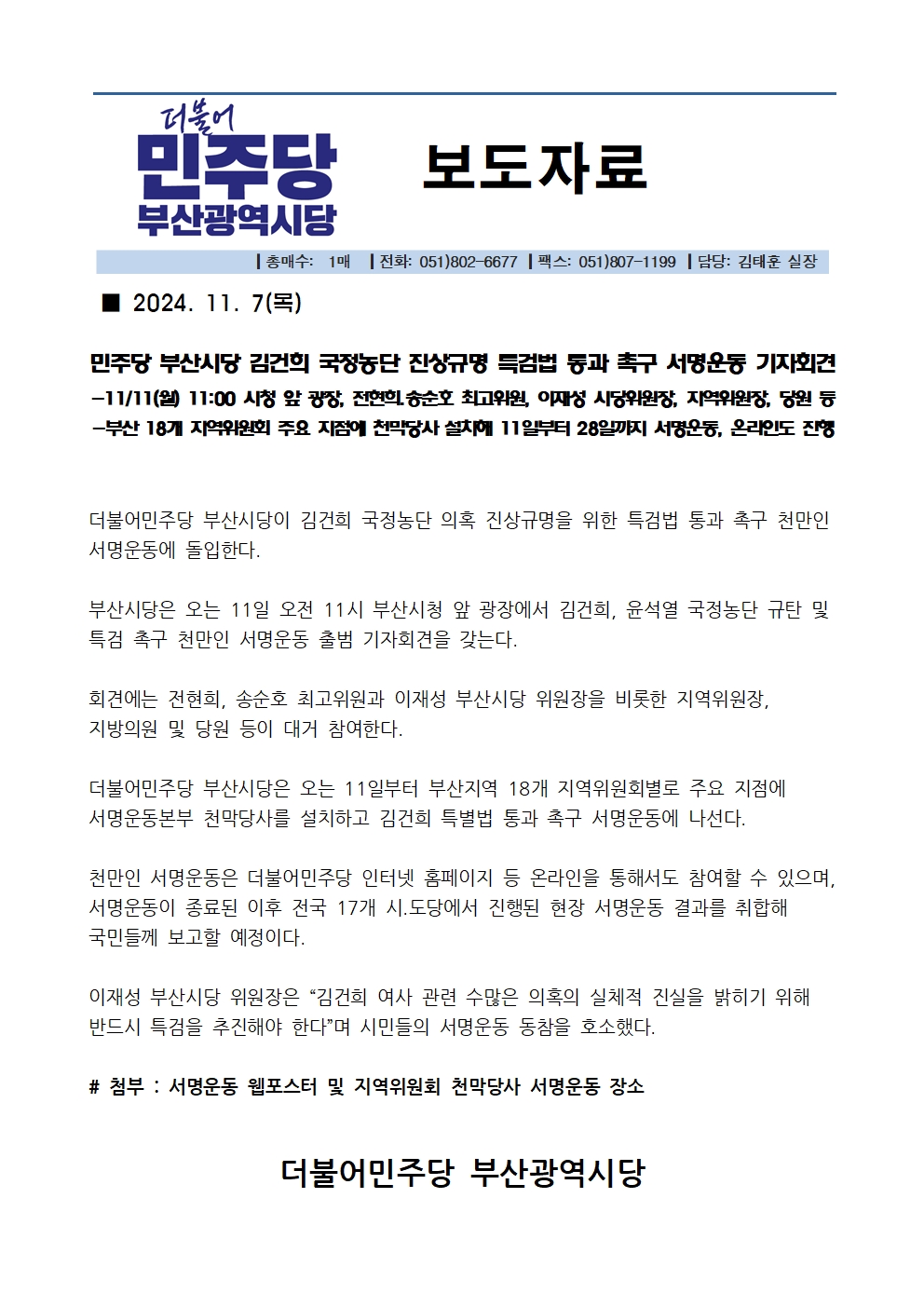 - 9일 10:30 충남 당원 500여명 모여 발대식 진행,“김건희 특검 촉구! 국정농단…