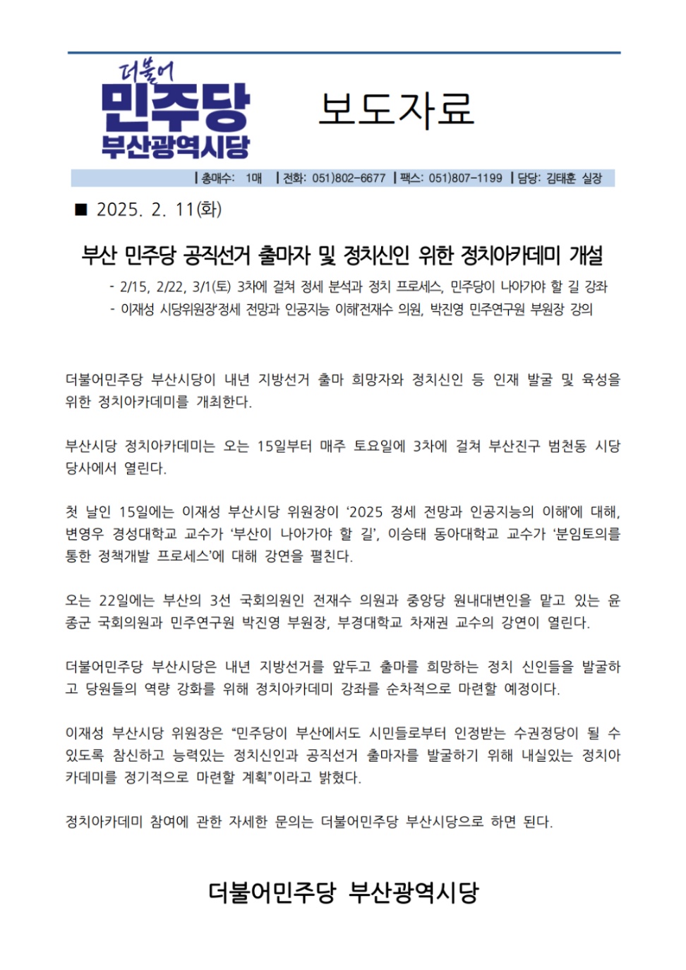 더불어민주당 대전시당(위원장 박정현…