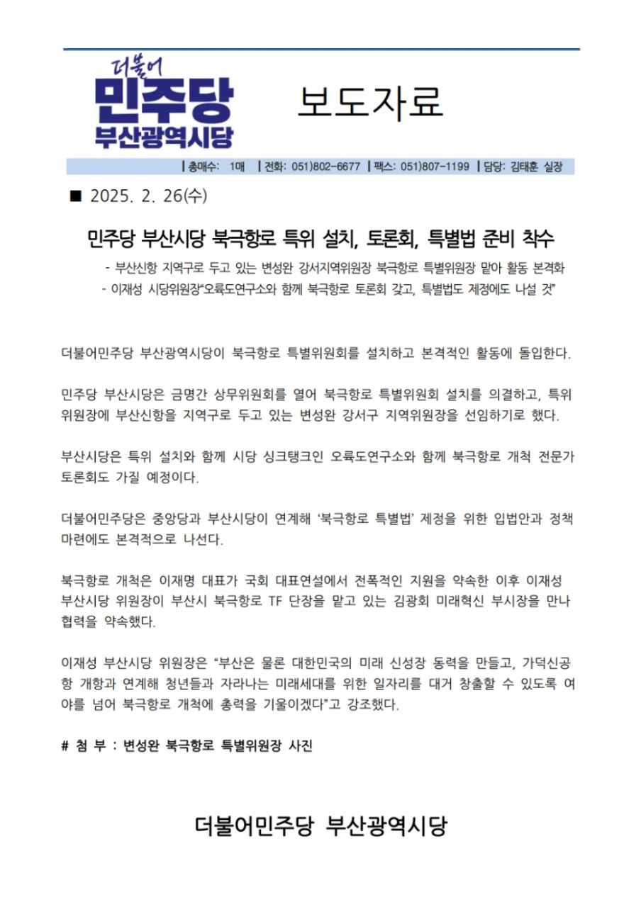 민주당 부산시당, 부산시와 북극항로 개척에 힘 모으기로