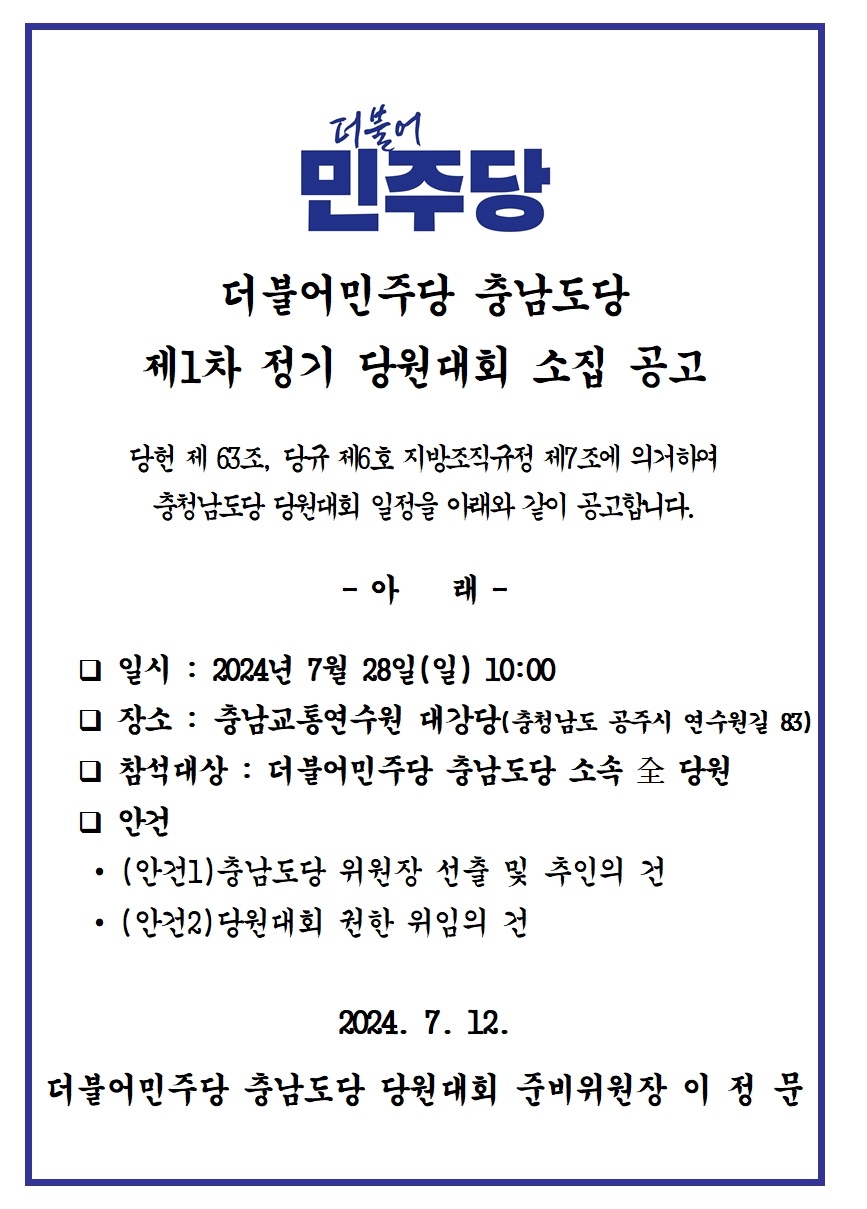 울산광역시당위원장선거 주요 일정 안내