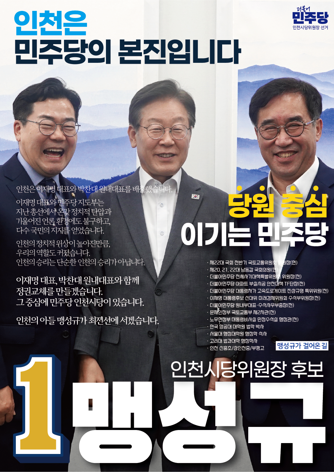 더불어민주당 인천광역시당 제1차 정기당원대회인천광역시당위원장 후보자 소개 페이지