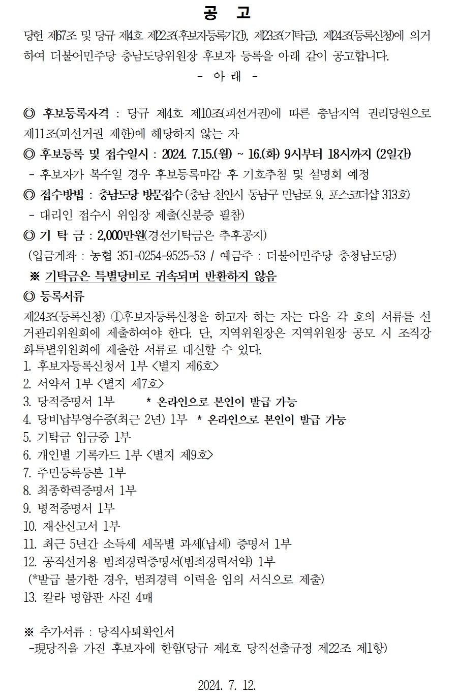 후보자 등록 공고