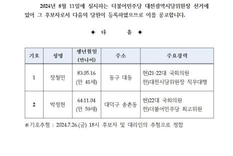 장철민·박정현 의원 시당위원장 경선 후보 등록