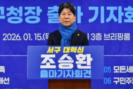 [김형호 기자] ▲ 광주광역시 서구청장 출마 선언하는 조승환 더불어민주당 정책위원회 부의장. 2026. 1. 15ⓒ 조승환측 제공조승환 더불어...